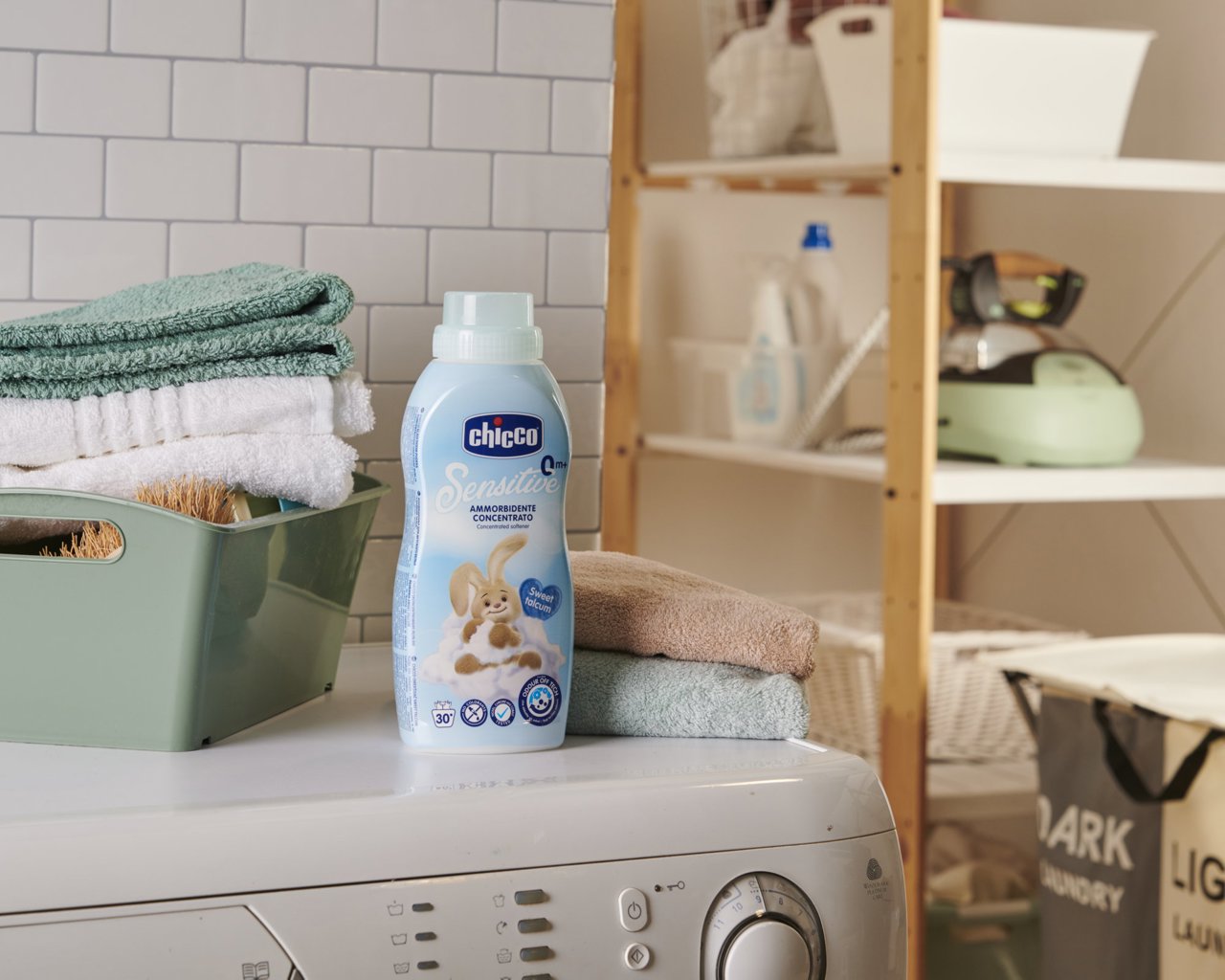 Împrospătează și înmoaie îmbrăcămintea copiilor, fără a irita pielea sensibilă a acestora.