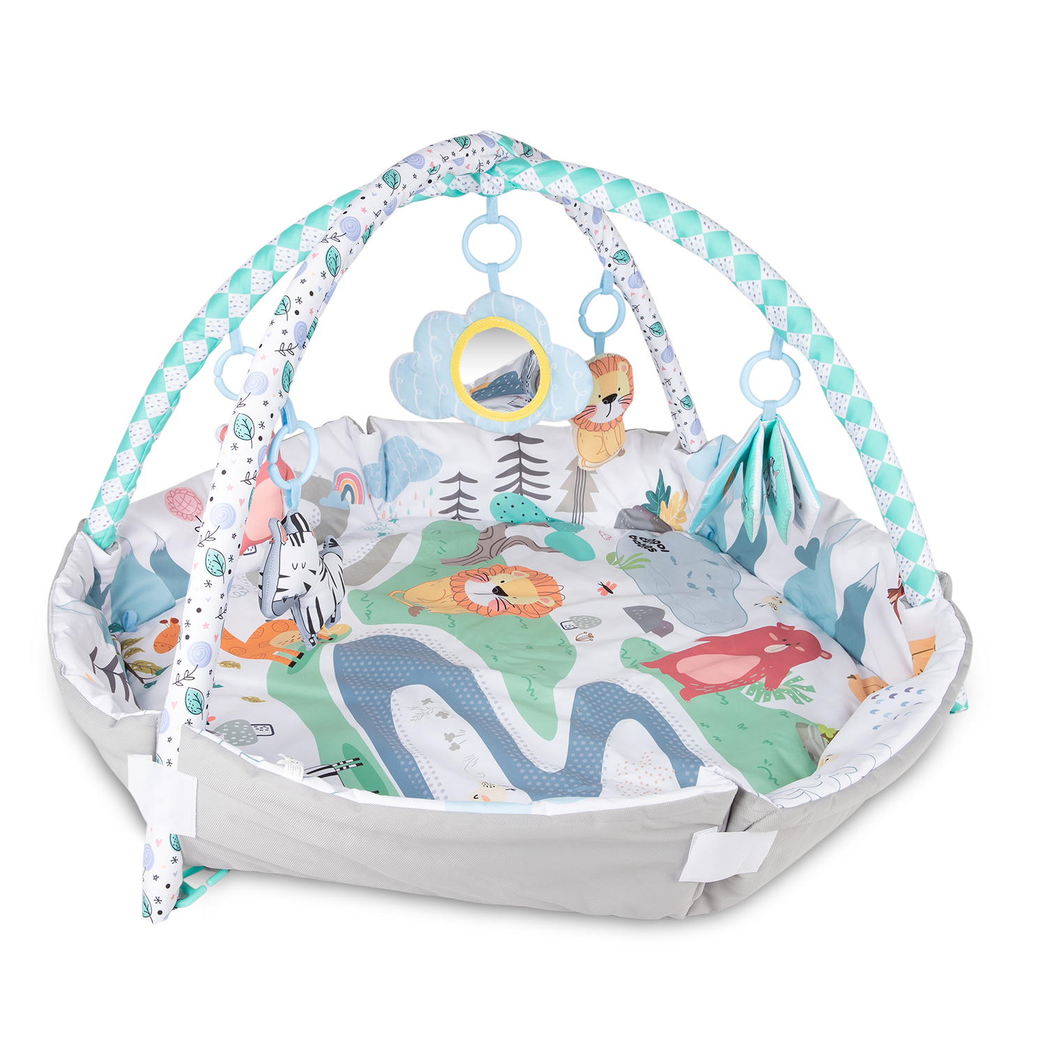Mata educațională de joacă SAFARI este o soluție 3 în 1, care crește odată cu copilul și poate fi utilizată ca un țarc, o mată educațională cu jucării suspendate sau pur și simplu ca o mată fără accesorii suplimentare. Atâtea posibilități fac ca această mată să încurajeze copilul să se joace pentru o perioadă îndelungată.