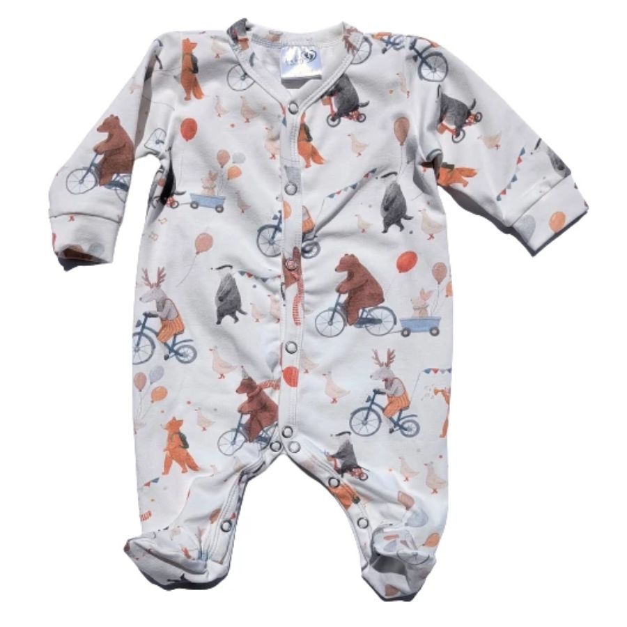 Pajac pentru bebeluși cu model pentru băieți. Creat din bumbac delicat și confortabil, asigură micuțului confort și libertate de mișcare, atât în timpul somnului, cât și în timpul jocurilor zilnice.