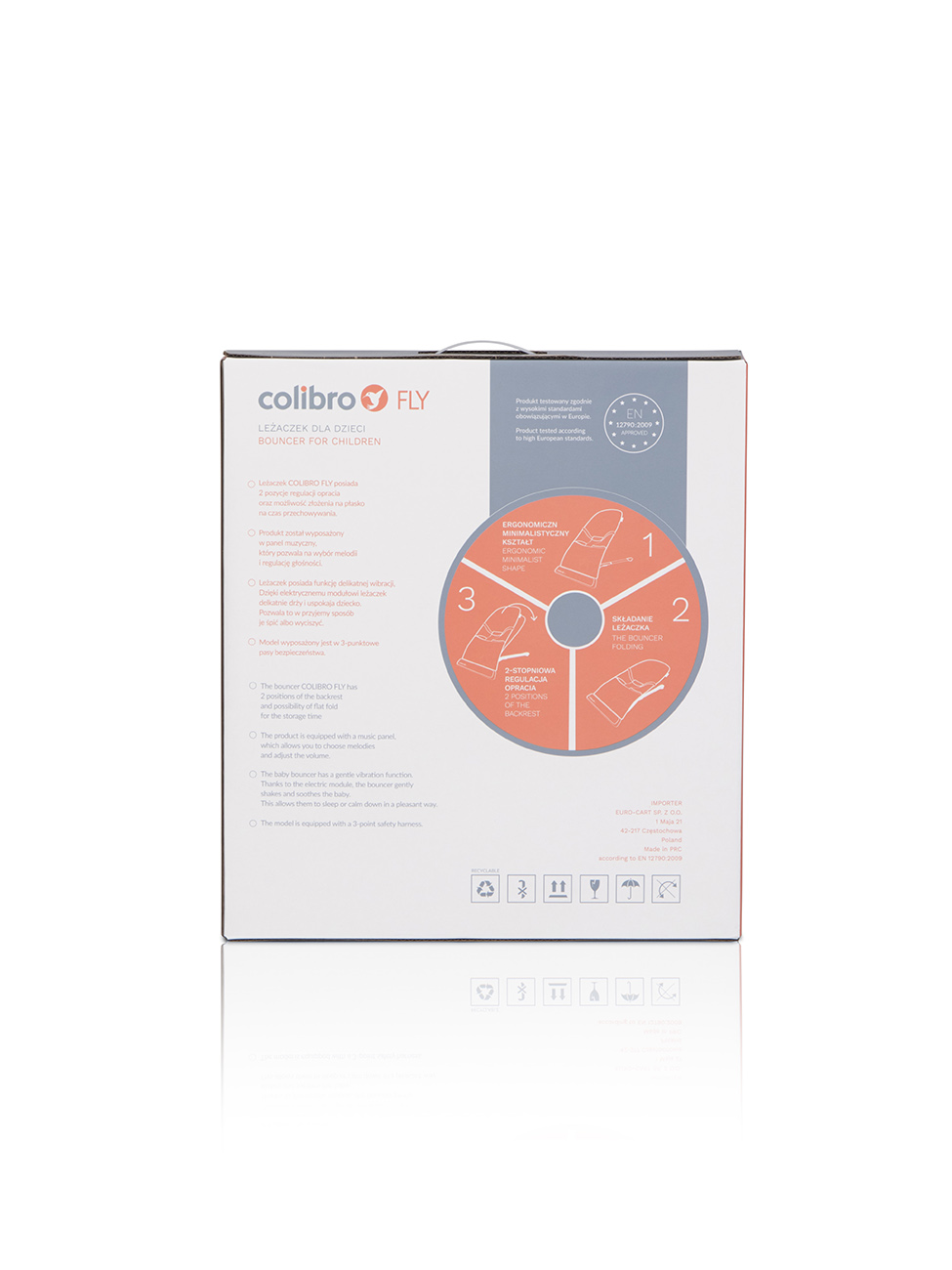 Leżaczek ergonomic COLIBRO FLY este, de asemenea, o idee excelentă pentru un cadou de ocazie. Este ambalat într-o cutie elegantă și colorată, cu un mâner confortabil pentru transport. COLIBRO FLY – relaxare atât pentru copii, cât și pentru părinți.