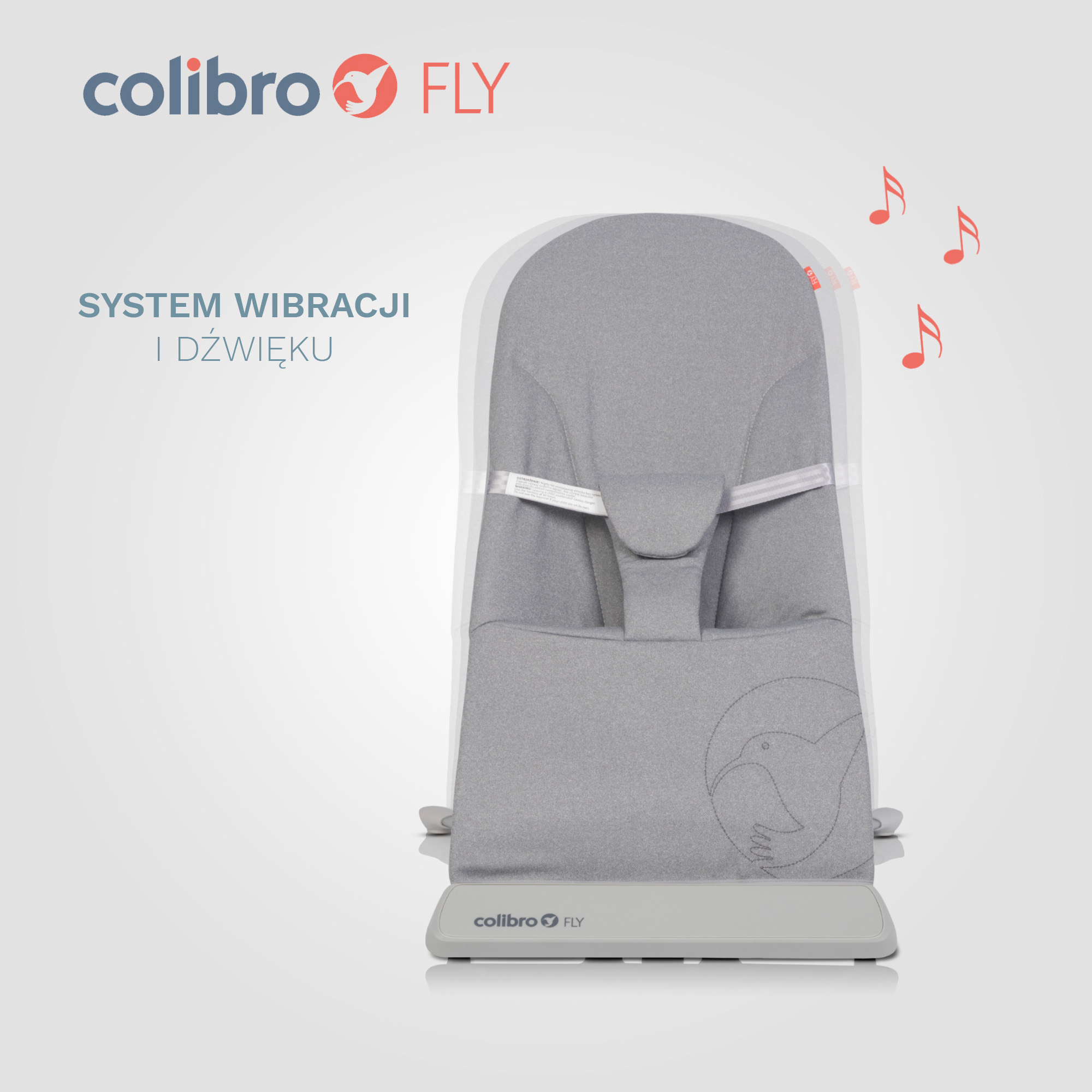 Ležacului FLY, marca COLIBRO, îi este atașat un panou electronic cu un difuzor încorporat, astfel încât odihna copilului să fie însoțită de nouă melodii plăcute. Reglarea volumului și funcția suplimentară de vibrație delicată îl ajută pe copil să adoarmă, iar ție îți oferă ocazia să savurezi o cană de cafea în liniște după o zi obositoare. Panoul este alimentat cu baterii, deci nu trebuie să te îngrijorezi de lungimea cablului sau de distanța față de priză.