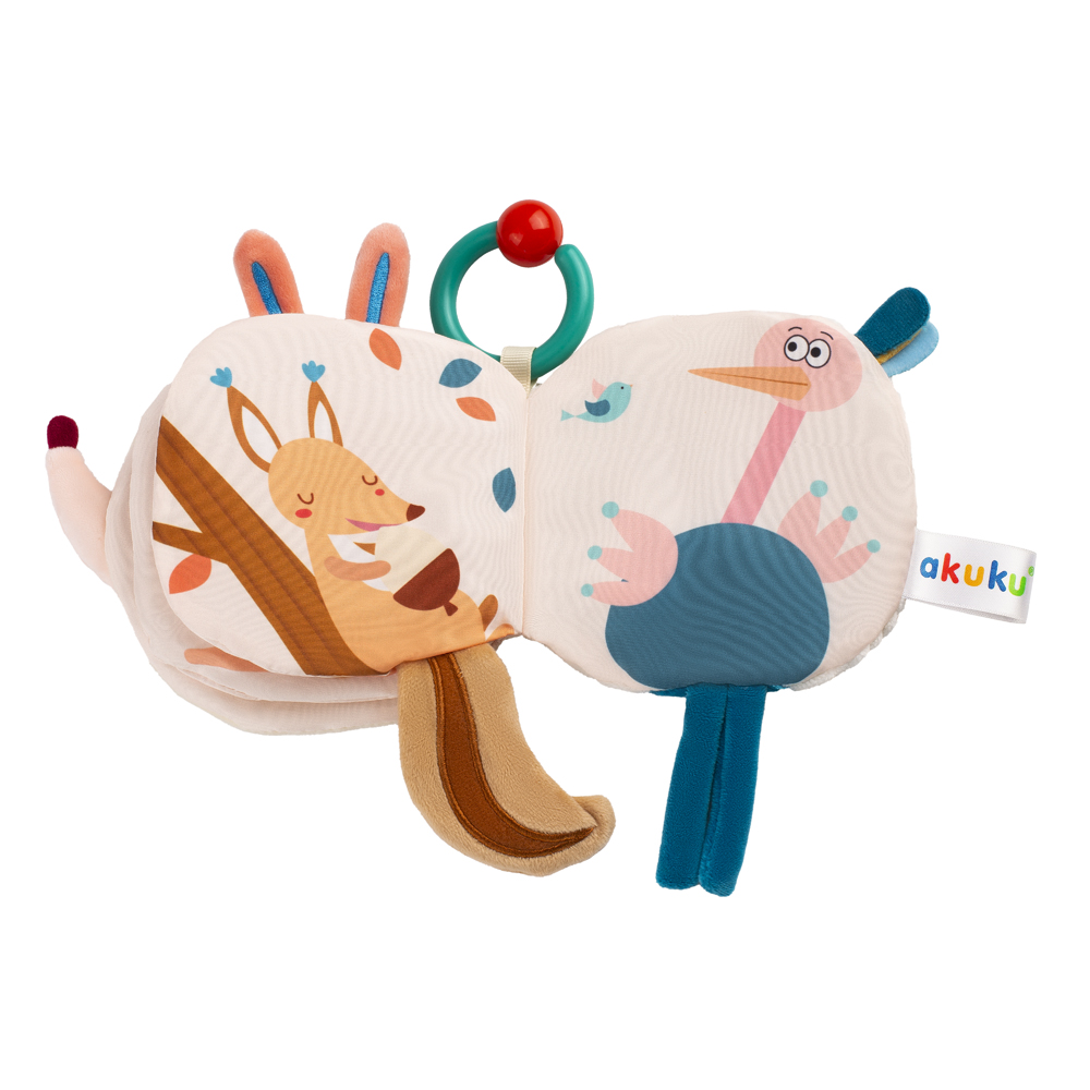 Cartea educativă Arici de pluș este plină de surprize care cu siguranță îl vor ține pe copilul dumneavoastră distrat ore întregi. Fabricată dintr-un material moale, tactil, cu o varietate de texturi, prezintă sunete de scârțâit și foșnet. Este perfectă pentru stimularea abilităților vizuale, auditive și motorii fine ale copilului dumneavoastră. Imaginile colorate, elementele în relief și o varietate de țesături ajută la dezvoltarea imaginației sale și încurajează joaca. Un cârlig practic în formă de inel vă permite să atașați cartea la un cărucior, pătuț sau chiar la un scaun auto. Păstrați jucăria curată; urmați instrucțiunile de spălare de pe etichetă. Spălați manual la 30°C folosind săpun pentru bebeluși. Verificați starea produsului înainte de a-l da copilului dumneavoastră. Înlocuiți orice jucărie uzată sau deteriorată cu una nouă. Îndepărtați toate ambalajele înainte de a-l da copilului dumneavoastră. Pentru a evita riscul de sufocare, nu lăsați ambalajul la îndemâna copiilor. Potrivit pentru copiii de 0 ani și peste.
