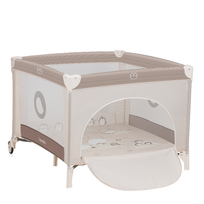 Bonnie este un pătuț funcțional pentru copii, care garantează un spațiu sigur și igienic pentru joacă, oferind părinților momente de relaxare. Laturile speciale din plasă permit circulația liberă a aerului și mențin contactul vizual cu copilul. Intrarea laterală cu fermoar oferă copiilor mai mari posibilitatea de a intra și ieși singuri din pătuț, ușurând astfel spatele părinților, care nu mai trebuie să ridice și să așeze copilul de fiecare dată. Fermul se află pe exterior, permițând astfel adultului să aibă control total asupra deschiderii pătuțului. Salteaua din spumă cu o duritate adecvată asigură condiții confortabile pentru odihnă. Un aspect important este că pătuțul poate fi pliat rapid la dimensiuni compacte și transportat cu ușurință folosind geanta inclusă în set. Tija de oțel stabilă oferă maximă siguranță – toate elementele rigide se află pe exterior.
