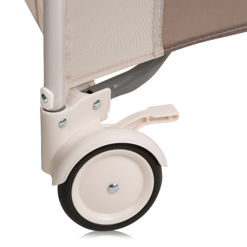 Roțile cu frână permit mutarea ușoară a pătuțului în funcție de necesități, astfel părintele poate folosi pătuțul în diferite încăperi.