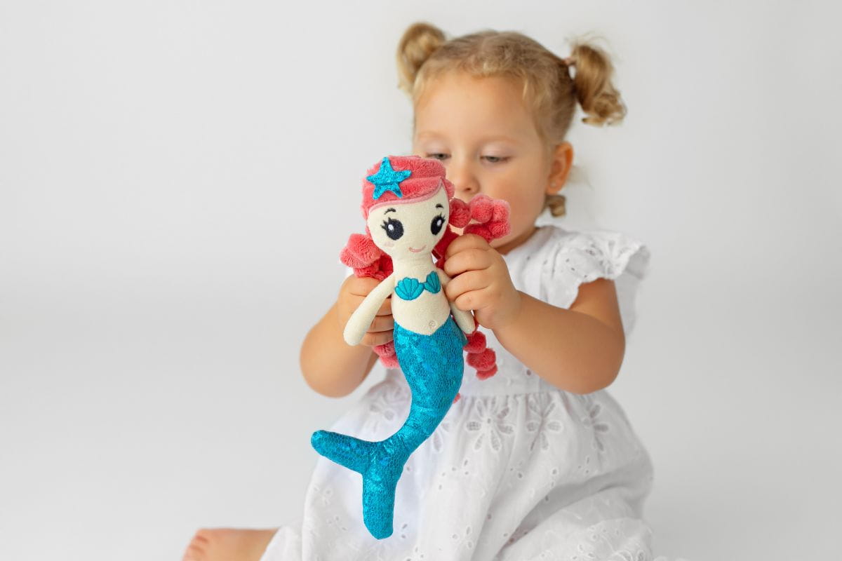 Syrenka Emma este o păpușă ușoară, din material textil, delicată și perfectă pentru a dezvolta simțul tactil al copiilor. Oferă un sentiment de siguranță, fiind ideală pentru îmbrățișat și pentru somn. Este o jucărie de înaltă calitate, confecționată manual, cu umplutură hipoalergenică, produsă în Polonia din materiale prietenoase pentru copii.