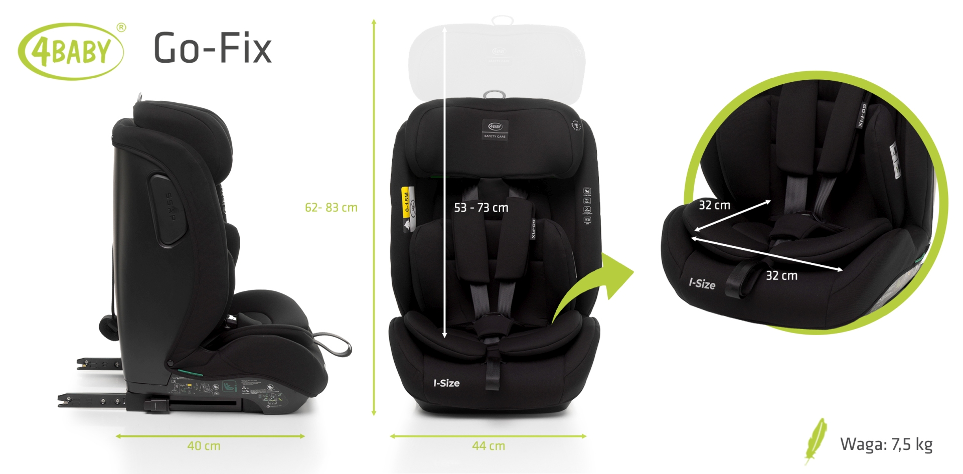 Scaun BABY GO-FIX 76-150cm NEGRU MĂRIME I