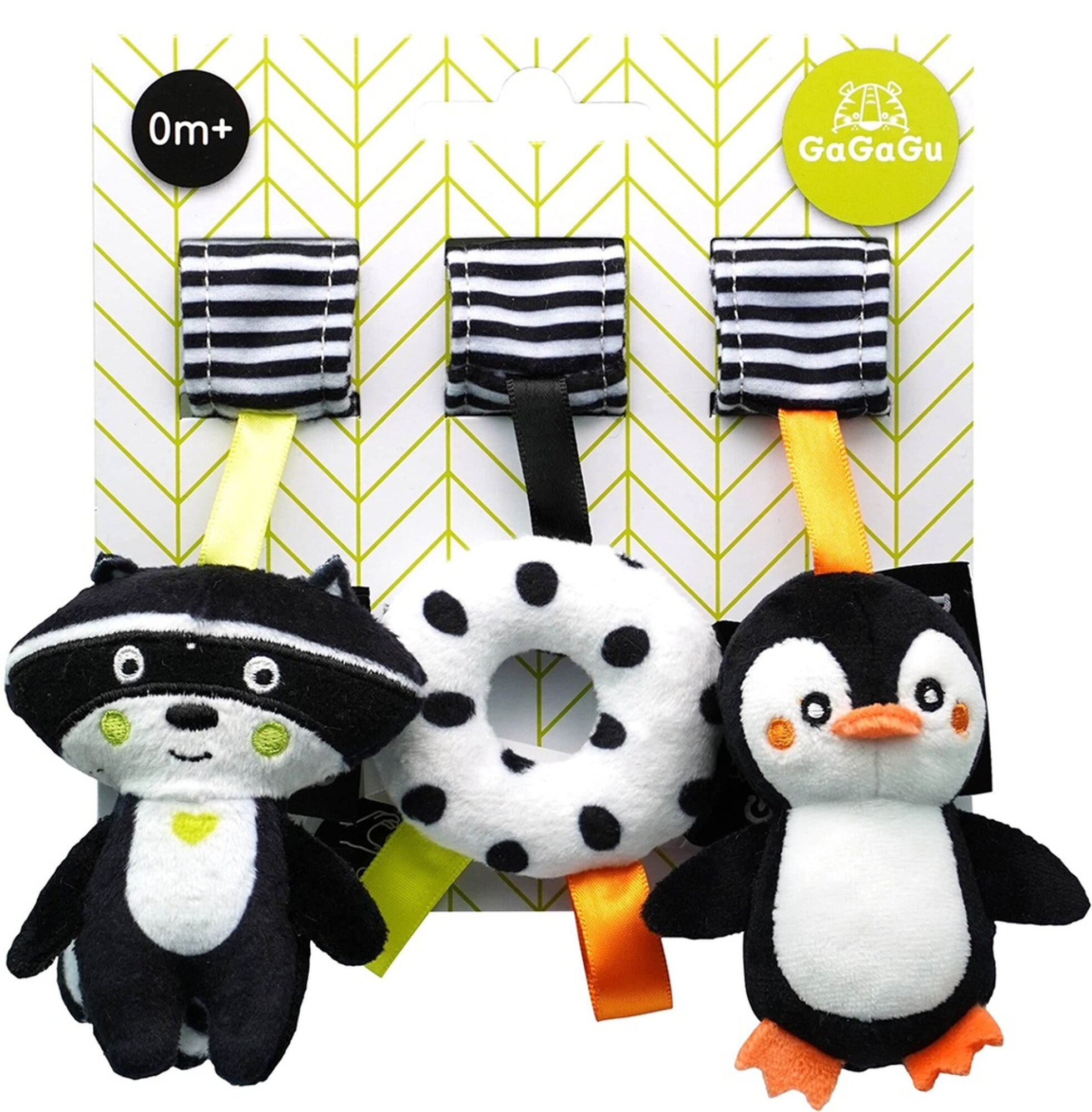 Setul de jucării GAGAGU este un ansamblu adorabil și creativ, conceput special pentru cei mai mici copii. În cadrul setului se regăsesc două mascote simpatici: un raton și un pingvin, ambele realizate din materiale de înaltă calitate, sigure pentru copii, fiind potrivite pentru bebelași încă de la 0+.