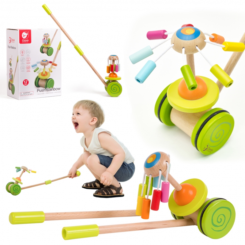 Produs destinat copiilor care încep să facă primii pași. Pătuțul colorat va încuraja cu siguranță micuțul să-și perfecționeze tehnica mersului și va face fiecare plimbare în familie mai plăcută. O atracție suplimentară pentru cei mici este caruselul colorat, în nuanțe de curcubeu, care emite un sunet foarte plăcut.