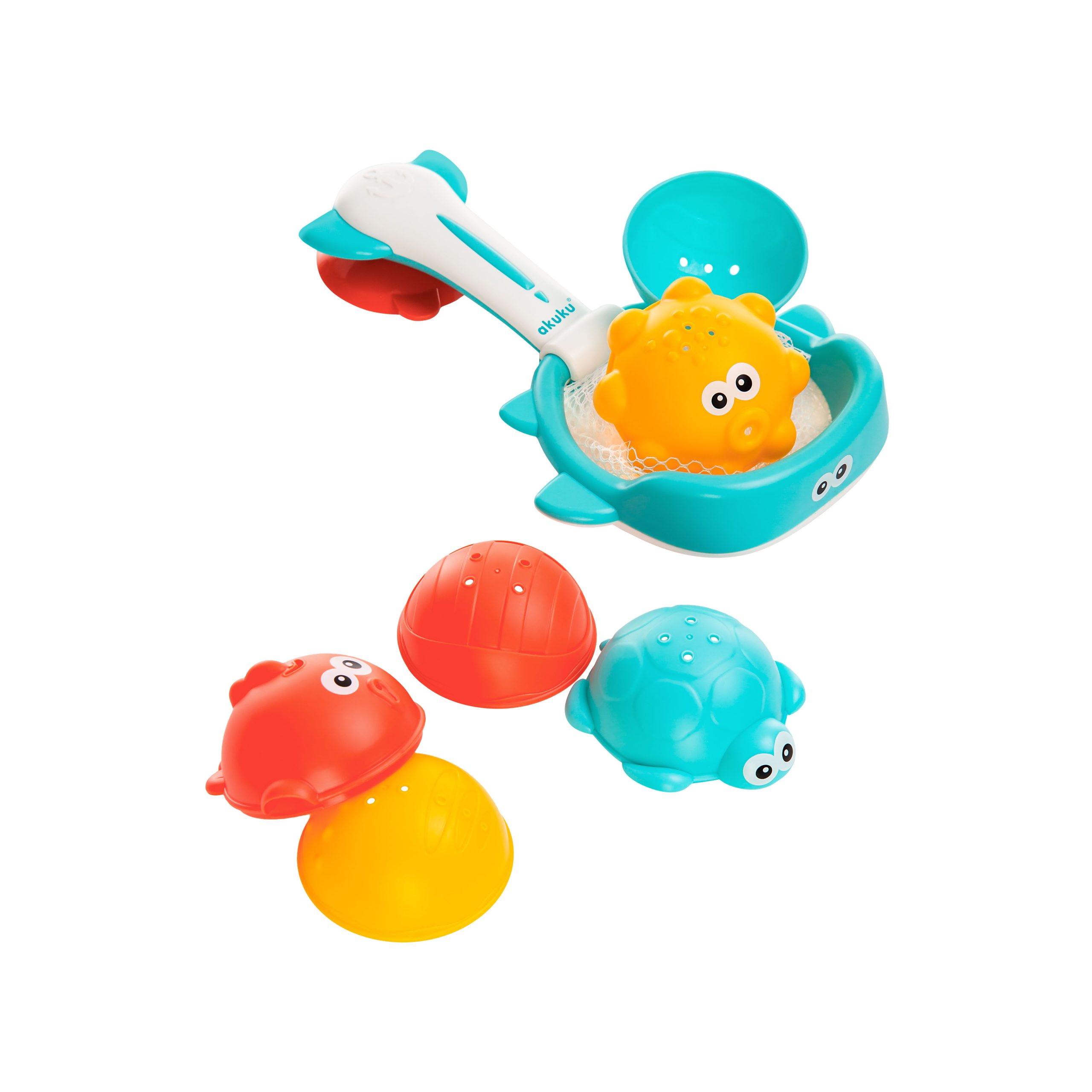 Un set de jucării pentru baie cu două funcții, de tipul „cucu”: