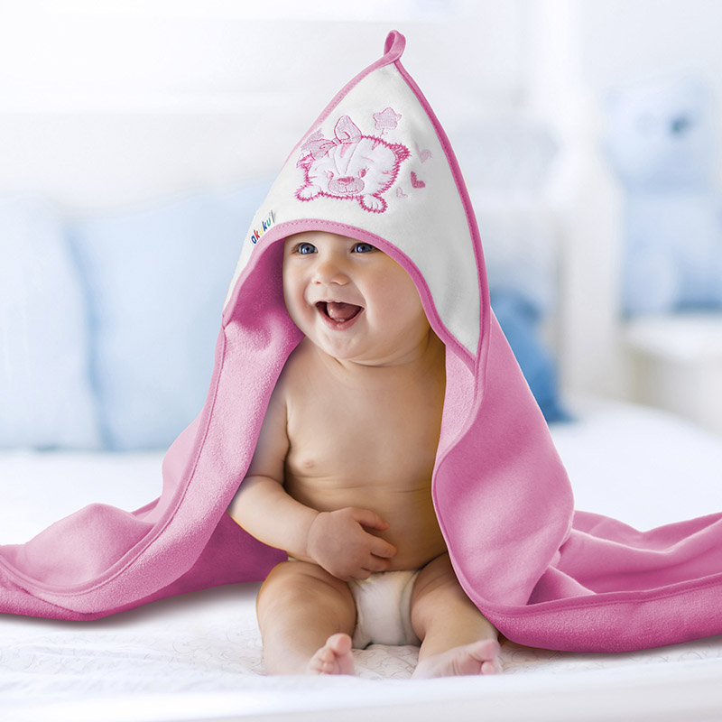Croiala lejeră permite o mișcare nelimitată după baie, iar gluga încorporată protejează capul ud al bebelușului de frig.