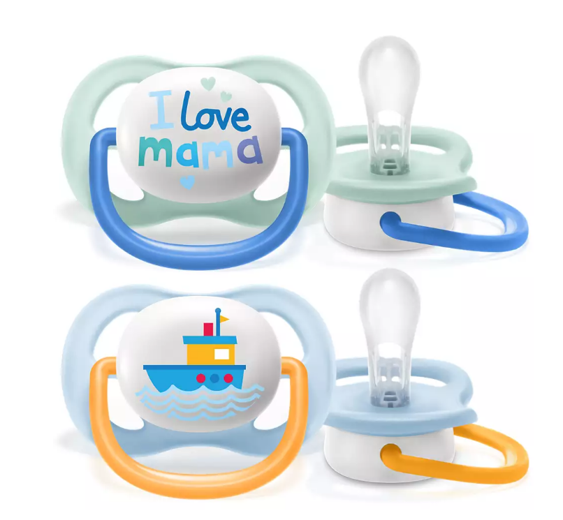 AVENT SCF080/01 Suzetă Ultra Air Happy 0-6 luni băiețel I love mama/barcă