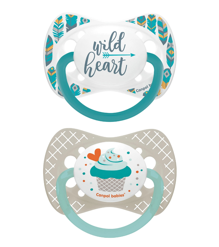 Aceste suzete au un design unic și original și sunt fabricate din materiale sigure. Acestea au o tetină din silicon cu formă simetrică. Un ecran ventilat permite circulația liberă a aerului. Tetina este fabricată din silicon sigur și delicat, complet transparent și fără gust. Un mâner confortabil facilitează hrănirea bebelușului cu suzeta și permite atașarea unui lanț. Designul original prezintă modele moderne pe întregul ecran. Două bucăți per pachet.