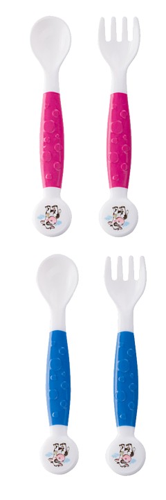 Ustensile flexibile realizate dintr-un material plastic sigur, care își păstrează forma după ce este îndoit. Acestea pot fi adaptate nevoilor copilului, indiferent dacă este dreptaci sau stângaci. Sunt ideale pentru învățarea mâncatului de unul singur. Marginea rotundă a ustensilelor nu irită gingiile delicate ale copiilor mici. Recomandate pentru copii cu vârsta de peste 12 luni.