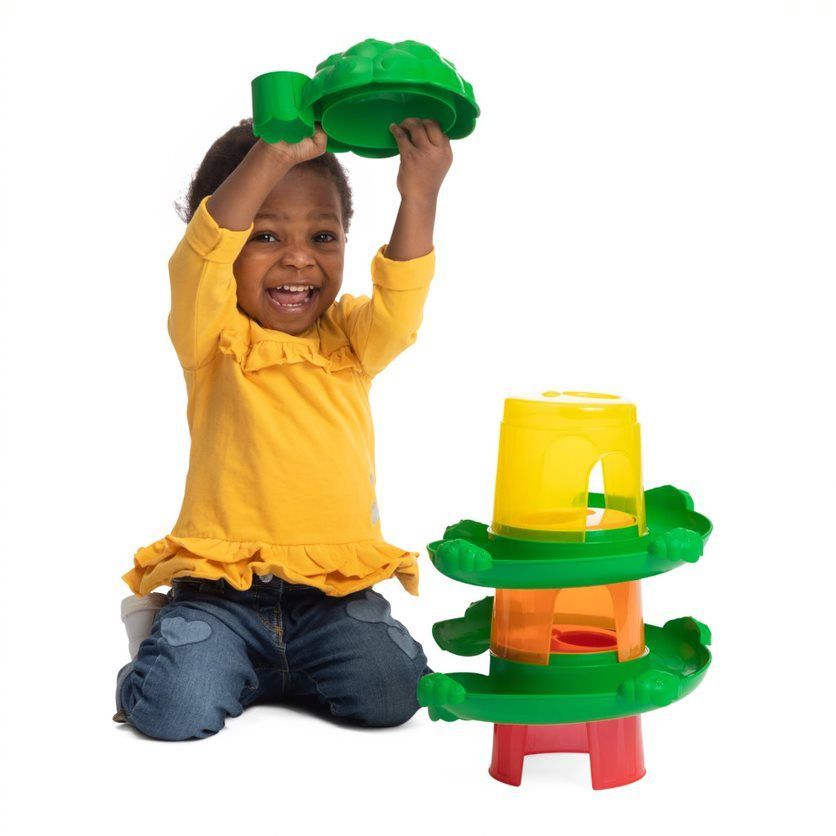 DOMEK NA DRZEWIE to zabawka, którą można układać z kilku elementów na kilka sposobów. Dziecko może przekładać kubeczki oraz zjeżdżalnie i tworzyć nowe trasy.