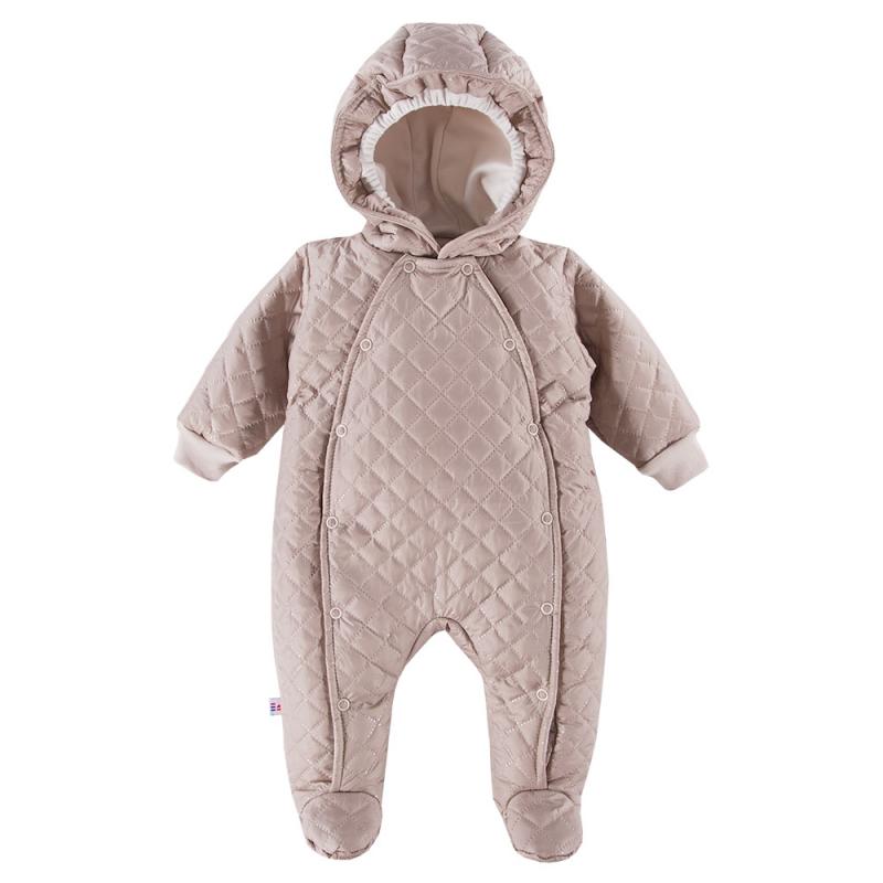 Kombinezon pentru bebeluși cu picioare din colecția Jump. Acesta este perfect pentru zilele de iarnă. Realizat dintr-un material textil special, oferă o protecție excelentă împotriva frigului, ploii și vântului. Are o strat suplimentar de izolație. Interiorul este căptușit cu bumbac. Pe gluga kombinezonului este inclus un elastic, care împiedică căderea acesteia și protejează capul copilului împotriva frigului. Kombinezonul se închide cu botoși.