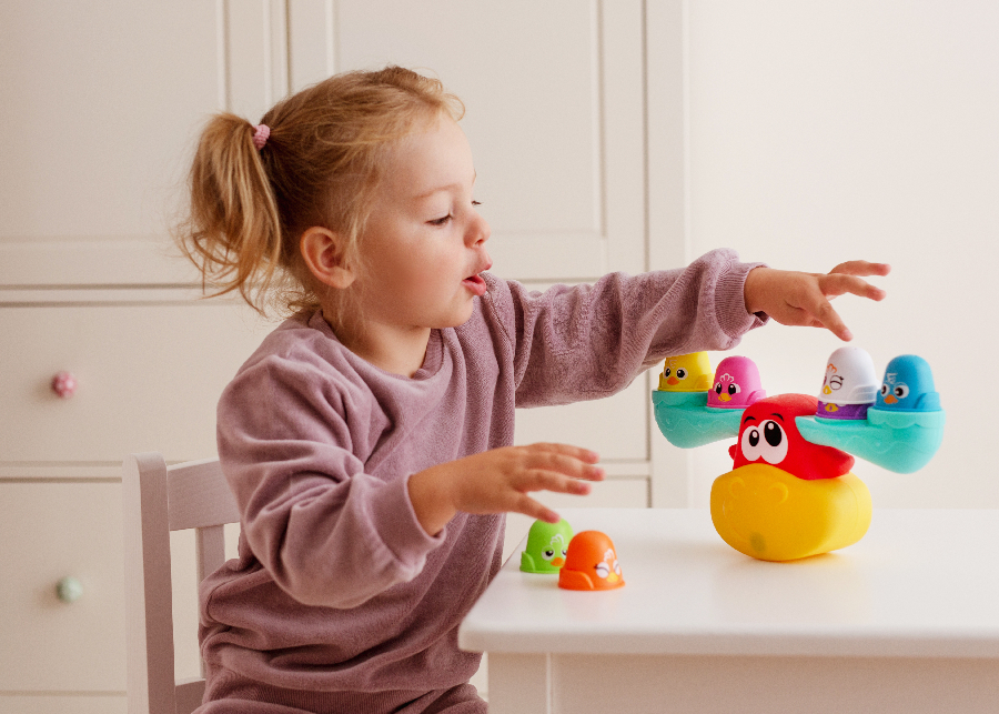• Setul include o balanță în formă de știulete și 7 cupe colorate – păsări;