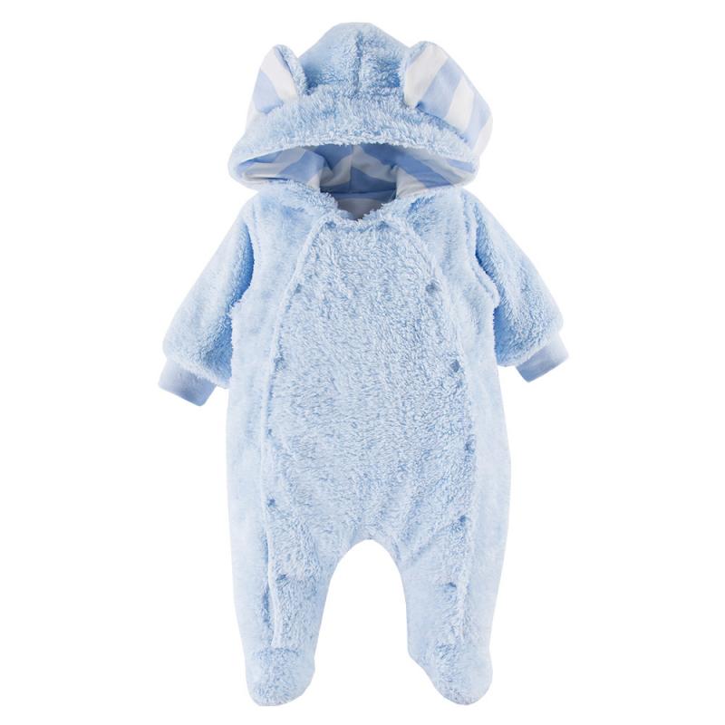 Kombinezonul pentru copii este perfect pentru tranziție, având glugă și urechile de animal ca elemente decorative. Se deschide pe toată lungimea din ambele părți. Acest kombinezon cu glugă este ideal pentru primele ieșiri din spital. Se poate îmbrăca purtându-l sub un sac de dormit sau un kombinezon de iarnă, oferind astfel o suplimentare de căldură. Kombinezonul de tranziție cu glugă este un „must-have” pentru orice trusă de naștere.